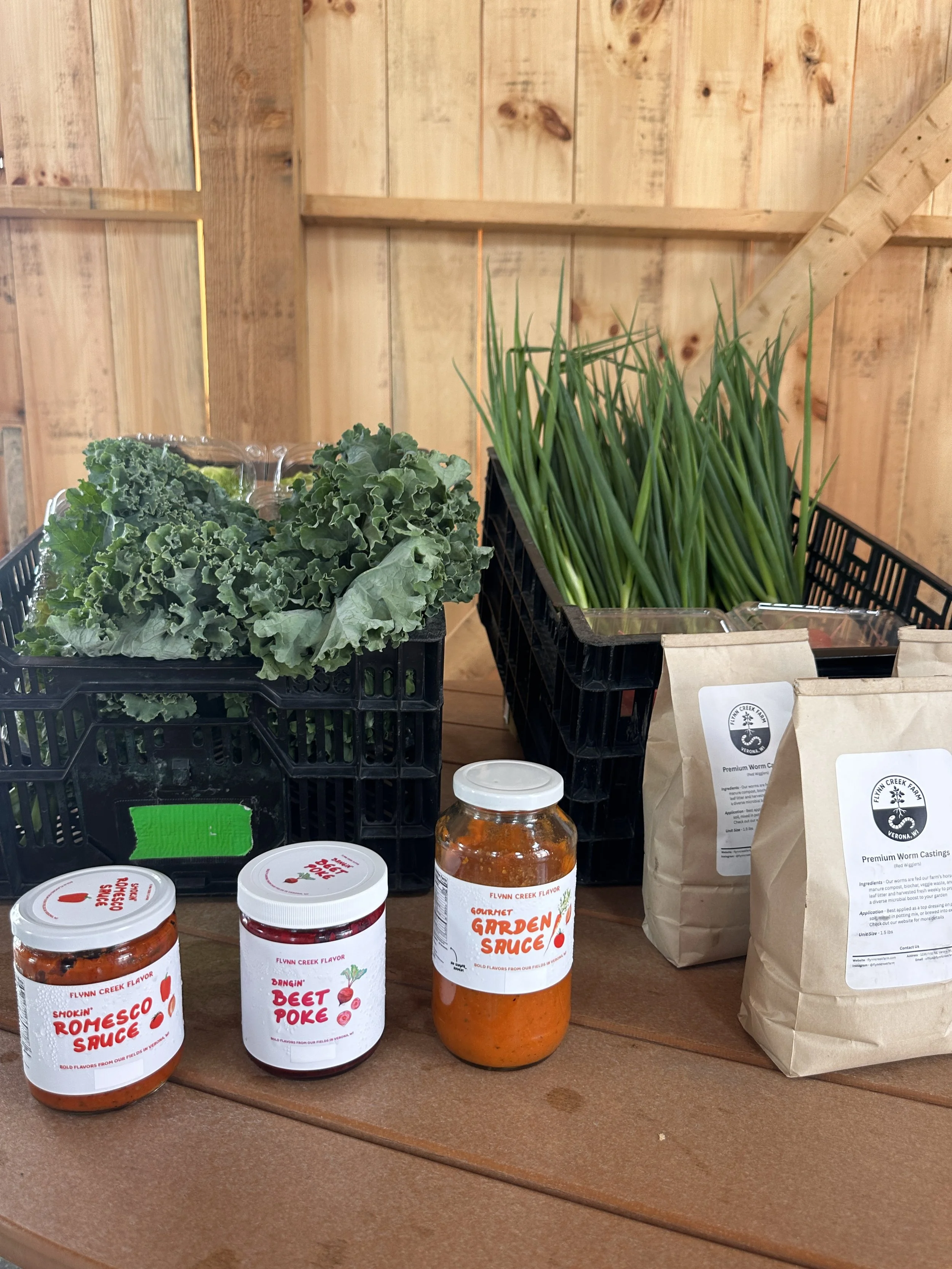 This program operates like store credit, which can be used for any product we sell. A Flynn Creek Farm Store Share combines the heart of a CSA with the flexibility of a market —available in $50 increments, cards can be used all season long on potting mixes and seedlings in the spring to fresh produce, grass-fed meat, eggs, and preserved sauces through October.
